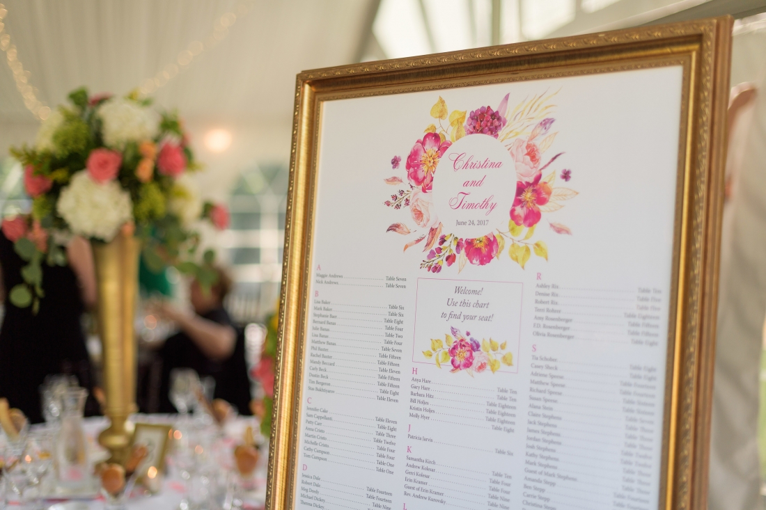 We took our time going carefully through the wording, ordering, and proofing process for the invitations, and when it came to day-of accessories, Melissa designed some truly gorgeous menus and a seating chart to match the bright colors and feel for the reception at Moonstone Manor.